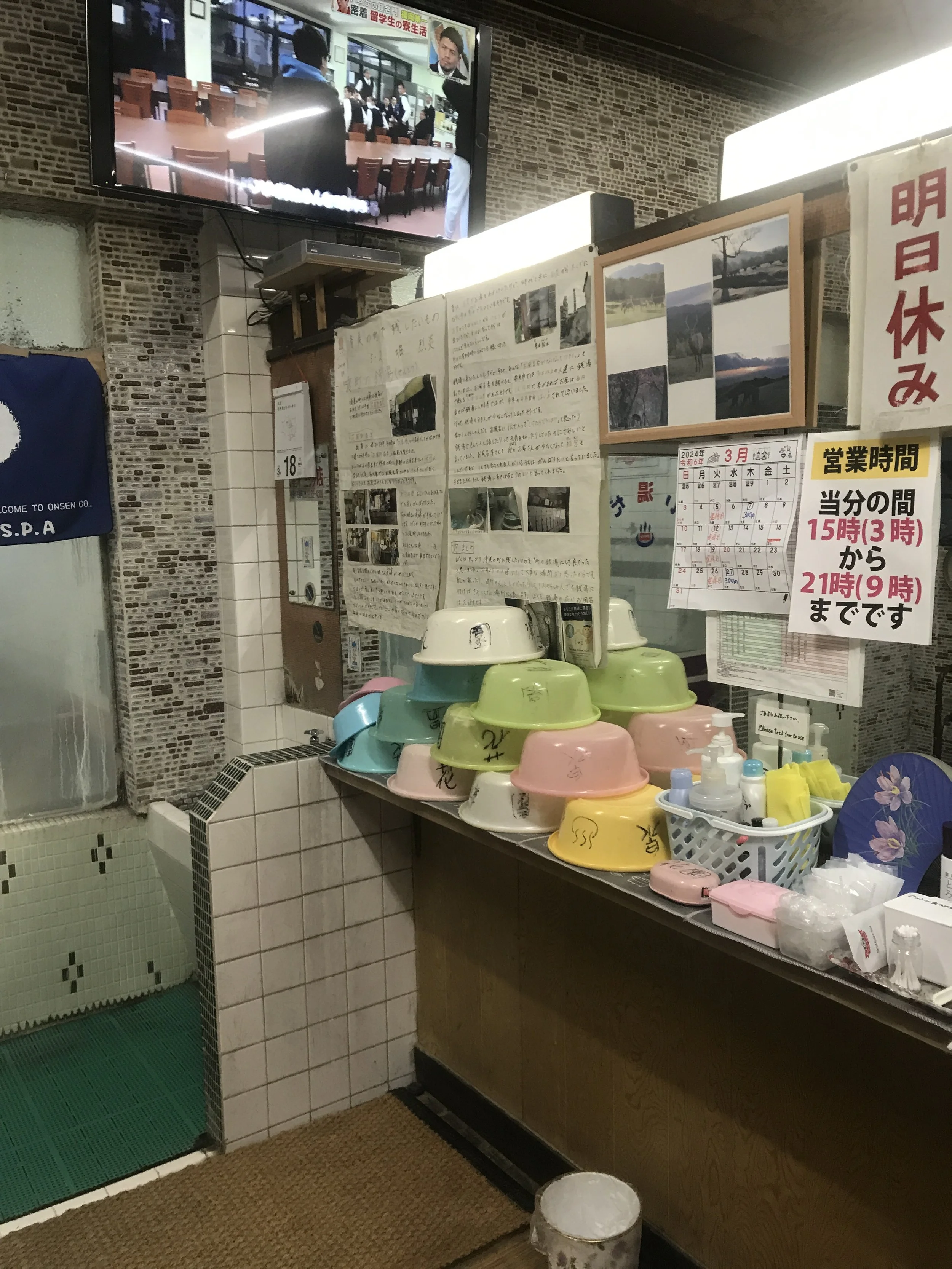 Mittlerweile kennen wir die meisten der Regeln, die man beachten muss. Schuhe in die Schuhbox, auskleiden, Waschschüssel und kleinen Plastiksitzhocker nehmen, einseifen, abspülen, ins warme Wasser, genießen und dann die ganze Tour rückwärts.