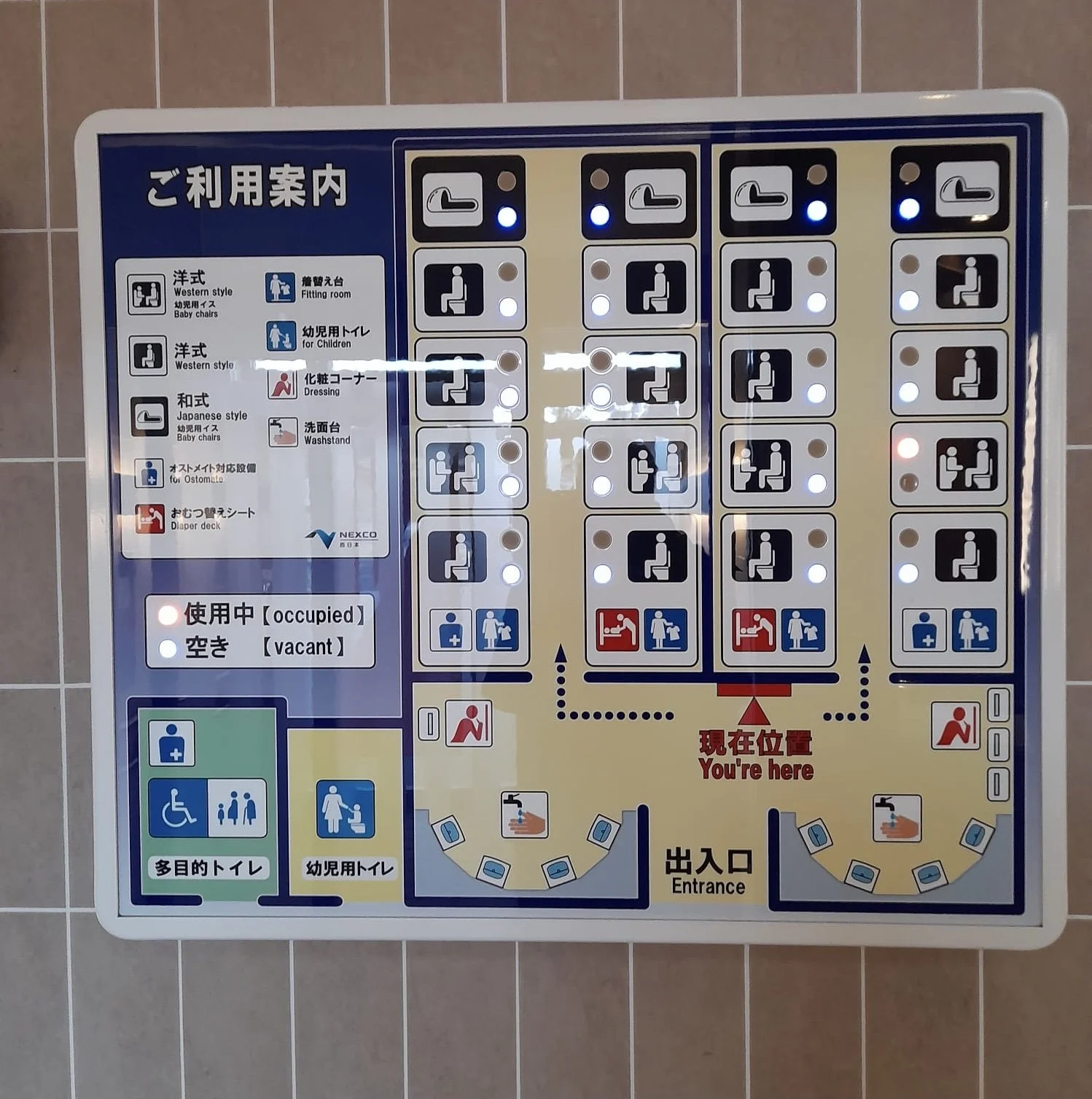 Auf die vielen Funktionsweisen der Toiletten möchte ich hier nicht näher eingehen (die liebste davon ist mir der warme Sitz), wohl aber darauf, wie ‚angstfrei‘ man als Deutsche auf Autobahntoiletten gehen kann. Von dieser Sauberkeit, Organisation und Hygiene können wir uns viel anziehen.